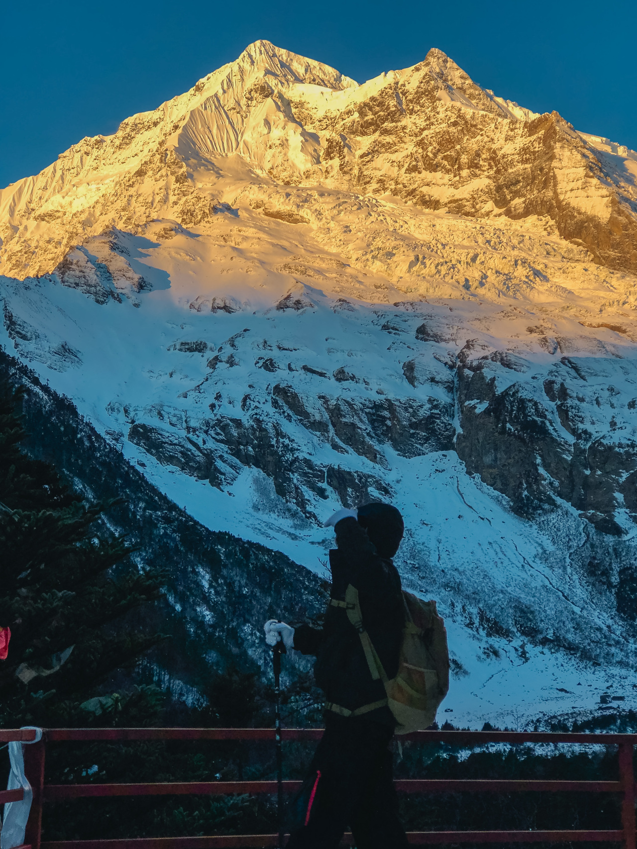 这里可以观看神女峰和五冠峰的全貌,更重要的是这里是朝圣者接受洗礼的地方,只有接受过神水的洗礼,整个朝圣之旅才算是完整,身体和心灵都得到净化,而后我们将原路返回雨崩村客栈休息。